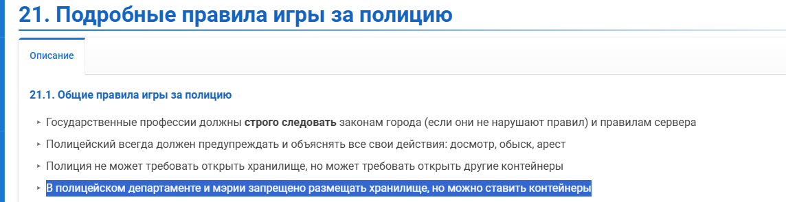 Привет #@парень администратор верно тебе указал на твою некорректную постройку в ПД. Пользователь @парень написал в жалоба админ хобби хорсер: “НАРУШЕНИЕ ПРАВИЛ СТРОИТЕЛЬСТВА”, скинув вырезку из правил, которая находится под пунктом “ПОДРОБНЫЕ ПРАВИЛА ИГРЫ ЗА ПОЛИЦИЮ” Log report generated 21 Sept, 18:38:43 #203689332 [13 Sept, 18:40:24] Боб Биг (STEAM_0:0:175073415, Гражданин, Руки) dropped octoinv_storage Participants: STEAM_0:0:175073415 Ты не офицер полиции соответственно НППИЗП к тебе неприменимо. Возможно администратор немного ошибся при объяснении тебе твоего нарушения из за неопытности или невнимательности. С ним будет проведена беседа на эту тему. Учитывая твой опыт на сервере ты не мог не знать, что делать такое не стоит. Второе наказание за постройку на Антонио также выдано верно. Вердикт: Отклонено Решение вынес ответственный администратор Stydent c одобрения старшей администрации