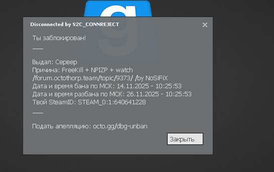 Заявка на разбан/ Бан за НОПС 20 дней)