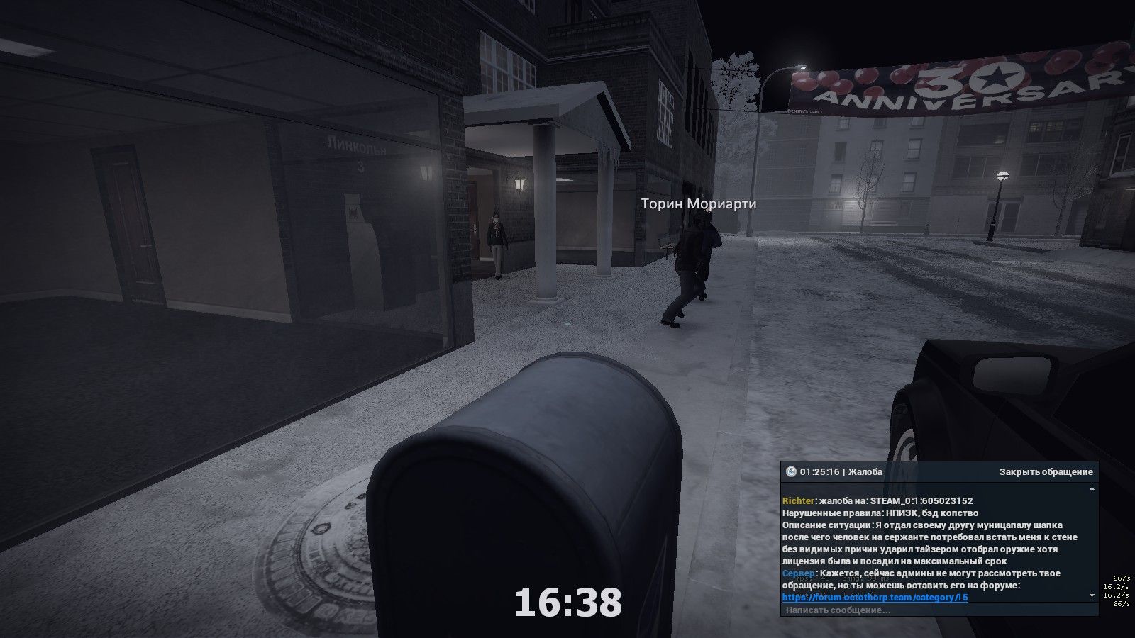 Мне крайне непонятны твои действия, ты зашел на Линкольн в подъезд и просто стоял с оружием, либо имел какой-то скрытый замысел(?), тебе было сказано бросить оружие когда мы на тебя вышли - ты не бросил. По поводу твоего добива ничего не знаю, никто намеренно тебя не добивал.