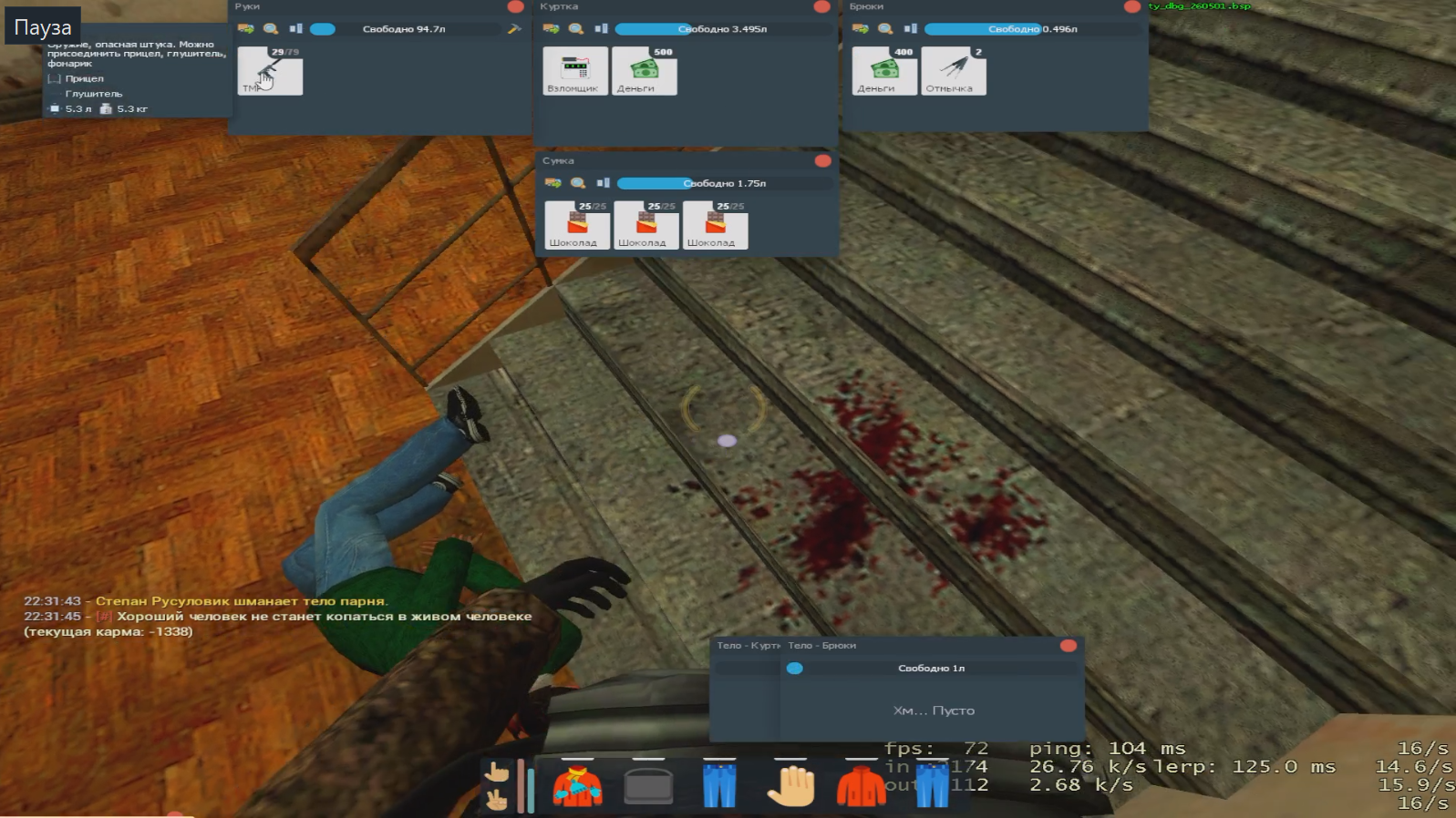 Возврат на вещи после краша сервера