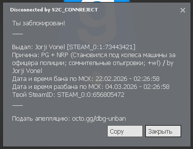 Фредерик Скотт - нарушение правил Mehan (никак не обыгрывал кражу предметов из твоих контейнеров и хранилища на глазах у толпы ; после совершения злого деяния сразу же отправил предмет, напрямую относящийся к ситуации в хранилище, никаких вопросов по поводу окончания ролевой ситуации не было), PowerGaming (не стоило совершать кражу прямо на глазах у офицера полиции, который пытался противодействовать краже) и NonRP (совершил кражу предметов, не несущих никакой ценности)