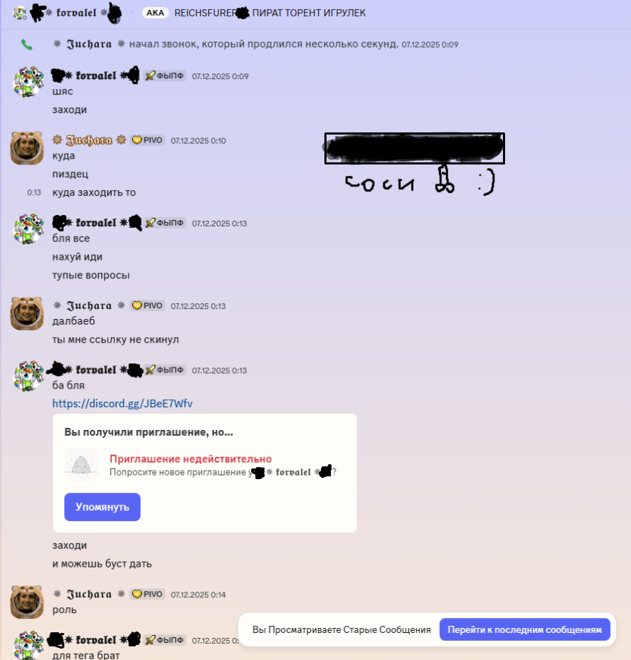 На его сервере сидят также @Dominic и @Pofigizm, че бы их тоже не снести? Каким образом я там главный темщик, я не понимаю. За всё время я туда написал пару сообщений и был 2 раза в войсе. Аргумент про то, что я помогал и играл на сервере с Пашей Дробовиком отпадают, потому что в августе, когда у меня с ним был контакт на этом ДС-сервере, он был официально разбанен на Доброграде через заявку. Я ему никак не помогал в обходах(и вообще про них не знал, т.к знаю, что за любую хуйню банят) и сам играю без читов (недавно проходил проверку за свою лютую скиллуху).