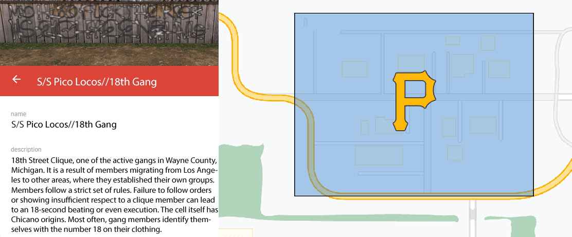 Pico Locos - Клика 18-й улицы, одна из действующих в округе Уэйн, штата Мичиган. Является следствием миграции членов из Лос-Анджелеса в другие районы, где они создавали свои собственные. Члены придерживаются строгого набора правил. Невыполнение указаний или отсутствие должного уважения члену клики может привести к 18-секундному избиению или даже казни. Сама ячейка имеет чиканское происхождение, но предпочитают косить под новую генерацию. Чаще всего члены банды идентифицируют себя с номером 18 на своей одежде и носят одежду спортивных команд, таких как: Los Angeles Dodgers, Pittsburgh Pirates и Boston Red Sox. Также чаще всего можно увидеть символы XV3, XVIII, 666, 9+9, 3-Точки в их граффити и татуировках. Цвета клики - синий и черный; синий олицетворяет принадлежность к Sureños, а черный - это оригинальный цвет бандформирования. Иногда их называют “Детской Армией” из-за вербовки молодежи начальных и средних школ. В среднем, каждый день кто-то подвергается нападению или ограблению со стороны бандформирования, но темп в три раза остывает. Хотя их основной источник дохода - это уличная продажа кокаина и марихуаны, они также были связаны с убийствами/заказными убийствами/нападениями/поджогами/наркотрафиком/вымогательством/вандализмом/грабежами и торговлей оружием, а также другими преступлениями. Хоть клика и существует под 18th прямую поддержку от них они уже не получают. Но есть взаимодействие с сетями Sureños и La Eme. Как раз таки получая от них оружие/наркотические вещества/заказы.