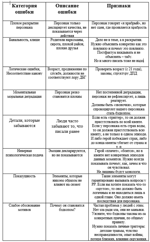 И не забывайте, что простая халатность не является бэдкопством. Если ваш персонаж просто что-то не сделал, не заполнил отчет или тому подобное, то это просто халатность. Она ведет к плохому пути, но если в тексте лишь она и ничего более, то просто ваш персонаж невнимательный. И тем более, ваш персонаж не должен быть архитипичным злодеем. Такие люди часто действуют в серой зоне. Они могут сделать нечто грубое для того, чтобы просто эффективно решить проблему, к крайностям они прибегают редко