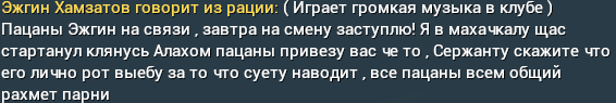 8. Нарушал мн. кодекс, таранил машины, после того, как сержант (я) вызвал того на личную беседу, ваххабит начал что-то выписывать в чат. Если потребуется, могу показать видеоматериалы.