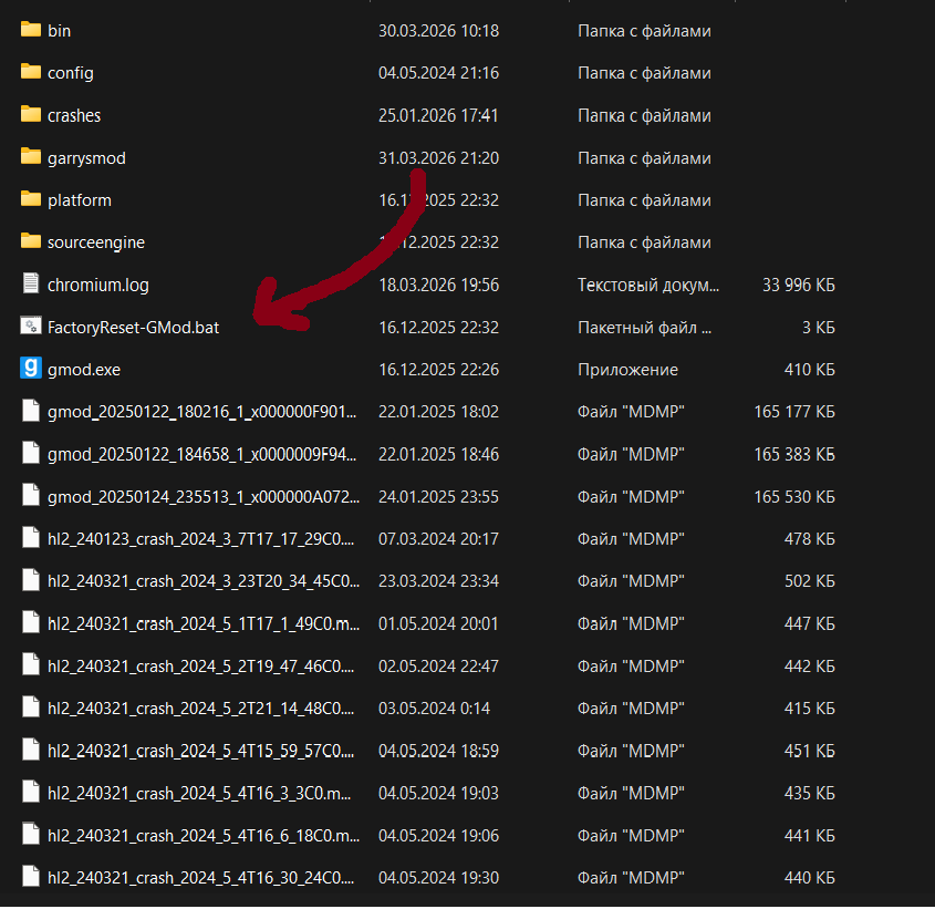 Нажмите на файл FactoryReset-GMod.bat (не от имени администратора т.к. может не сработать).