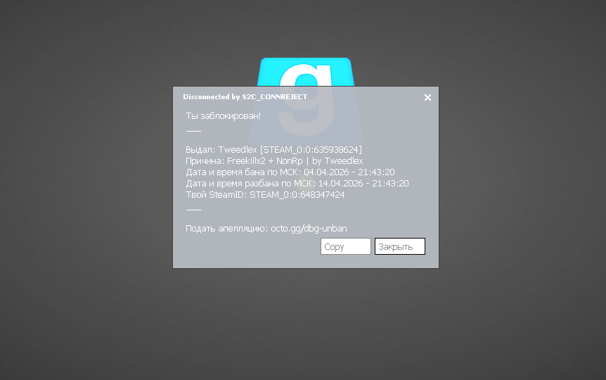 4 ник того кто выдал наказание:@duck17