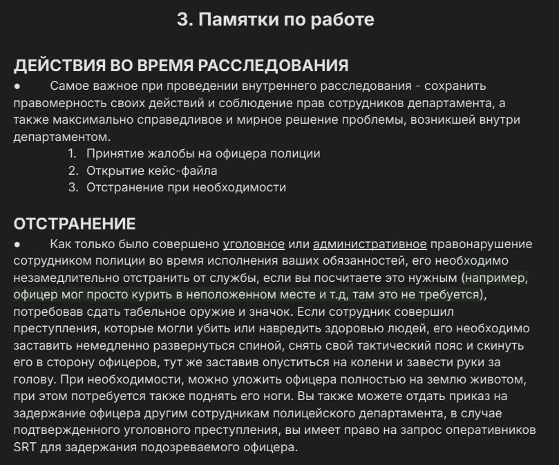 То, что тебе скинул Сэм Хокстан, это непроверенная руководством версия, поэтому отталкиваться от него 100% не стоит + ты уже подсознательно нарушаешь ОПС, так как в РП сотрудники патрульного и иных отделов к мануалу ОВР доступа не имеют.