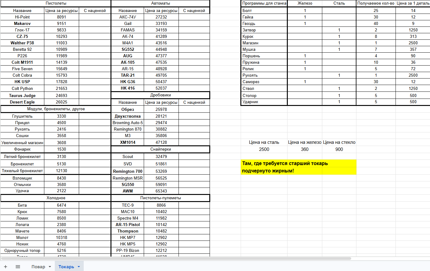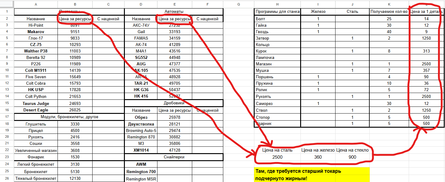 По большей части в этом гайде я хотел бы поделиться с таблицей, которую в последующем каждый сможет настроить на свой вкус, и лучше разбираться в ценах.