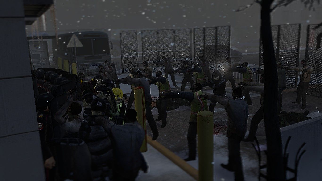 Голос из рации: Держатся до последнего! защитить граждан. ваша цель дожить до утра к утру к вам приедет из другого Ближайшего города Специальная Команда Реагирования! Даю разрешение Ликвидировать Зараженных граждан.