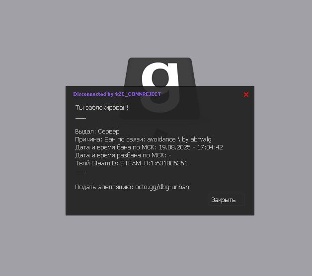 - Вид наказания (если бан, то приложить скриншот окна блокировки; загружать сюда )