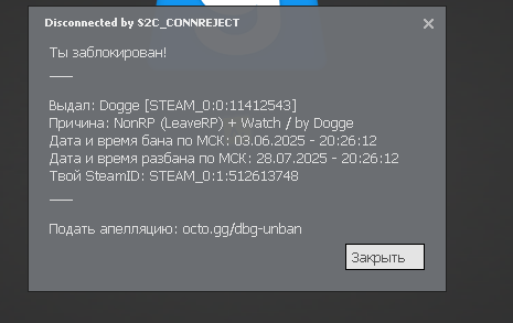 7.Друг посоветовал Доброград еще 3 года назад, я в тот момент даже и не знал о нем. Зашел, прошел тест и меня забанил за читы Zverok99, хотя я даже не успел создать персонажа, толком заспавниться и поиграть, а меня забанили без проверки. После подачи заявки на разбан я через какое-то время решил попробовать обойти блокировку, уж очень хотелось поиграть, попробовать себя на этом сервере, признаю это. После обхода меня также забанили и я также не успел поиграть, создать своего персонажа.