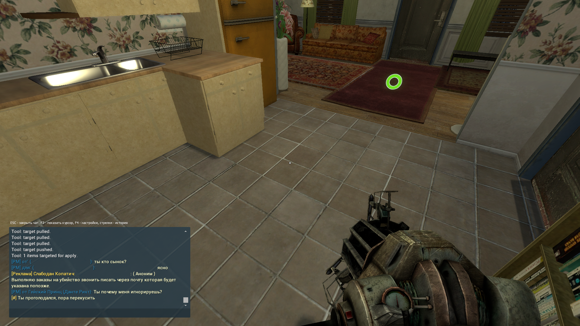 Это подтверждают следующие логи, а также прикрепленная демонстрация топикстартера:14 Jan, 22:46:07 Ансель Братушкин (STEAM_0:0:82361758, Гражданин) successfully executed chat command: /me берёт ораньжевого человека, тащит в ванную. 14 Jan, 22:45:34 Ансель Братушкин (STEAM_0:0:82361758, Гражданин) successfully executed chat command: /me берёт парня в чёрном под руки, тащит в ванну к потрохам. 14 Jan, 22:49:29 Майкл Паркер (STEAM_0:1:512306095, Офицер DPD) aimed at Ансель Братушкин (STEAM_0:0:82361758, Гражданин) with M3. Police online: 7 14 Jan, 22:50:45 Ансель Братушкин (STEAM_0:0:82361758, Гражданин) was cuffed by Родни Харп (STEAM_0:1:419671073, Офицер DPD) with weapon_cuff_police. Police online: 7