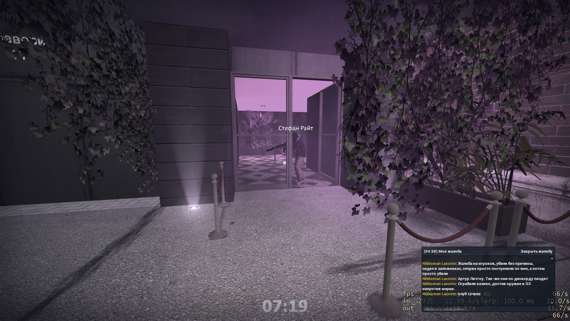 Стефан Райт же, после всей этой движухи уводит заложников к выходу, там они стоят, но Стефан решается провоцировать копов, высовываясь из клуба и перестреливаясь, и так из раза в раз, с условием, что заложники до сих пор в здании. Не вижу здесь ролевой логики, взятие заложников, налет и прочее, ведь краймеры делают все, что бы просто постреляться и умереть, цели их игры попросту ноль, но при этом они испортили своей недо игрой нашу, крайм фаркционную игру…Просьба внимательно изучить текс, сопоставить с предоставленными доказательствами и вывести оправданный вердикт.