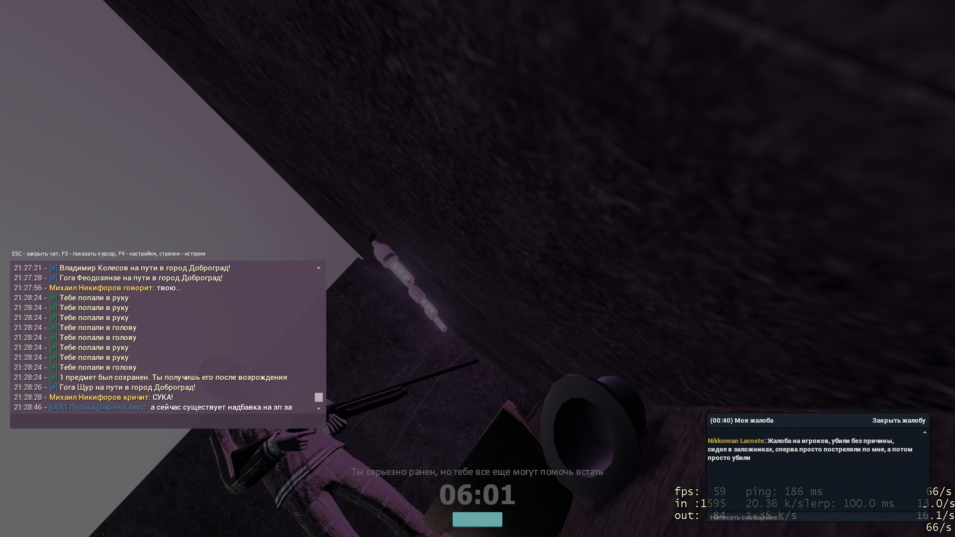 Администратор утверждает что я обманщик, но мои же доказательства говорят о том, что я в чате нихрена не видел, сопоставьте логи его слов, с моими логами ранений и скриншотов, где четко будет видно, что я в чате ничего не видел. Не нужно из меня делать дурачка обманщика. Если игрок где то в далеке писал что либо, дабы убить меня легально, то почему я должен быть виновным в этом???