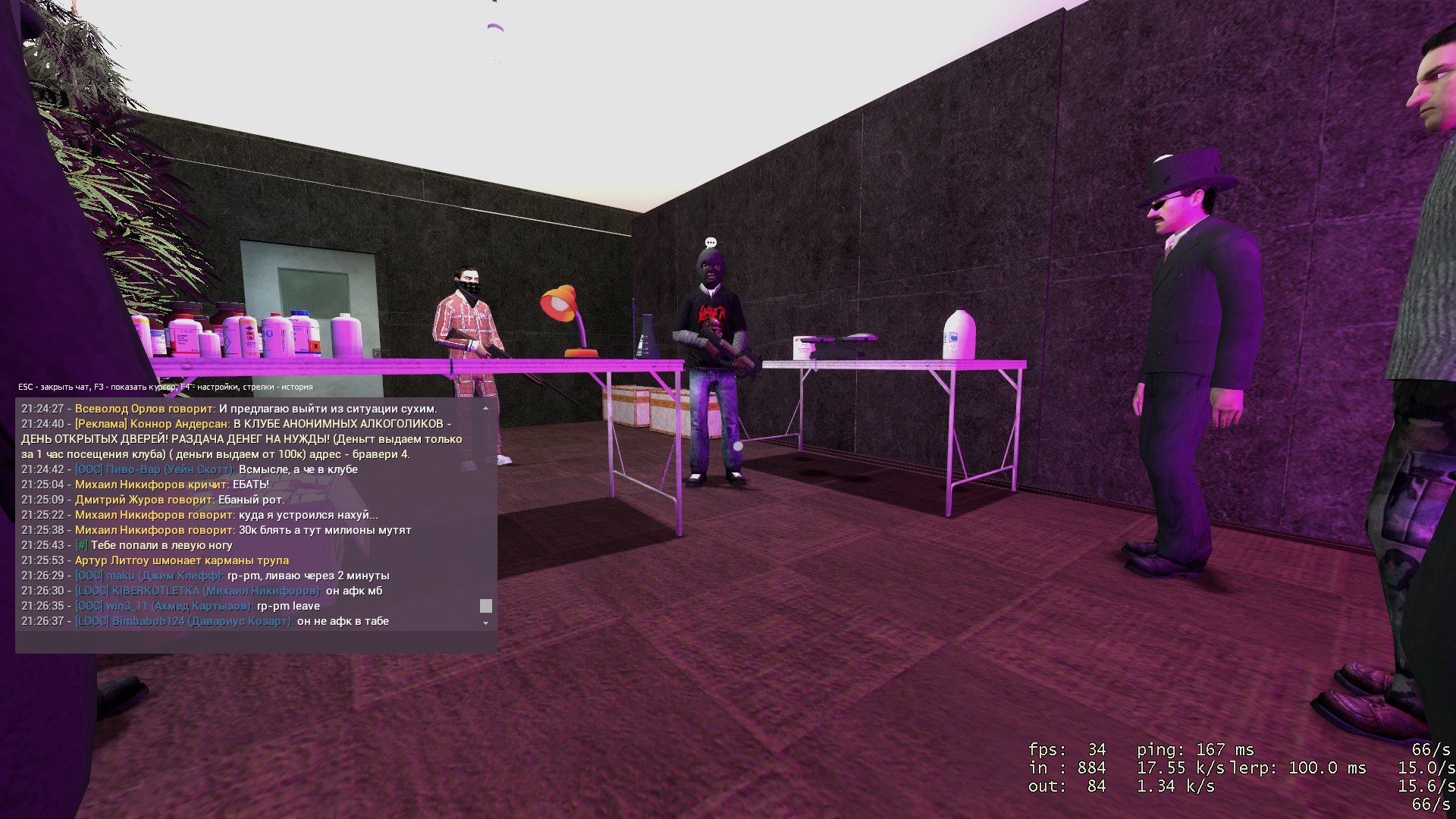 8. Описание ситуации: Сидели в клубе, отыгрывали крайм фраку и набор сотрудников. После залетают краймеры. Артур Литгоу решается меня убить, причину я так и не узнал. Ибо я не сопротивлялся и не нес угрозы, а подчинялся их приказу.