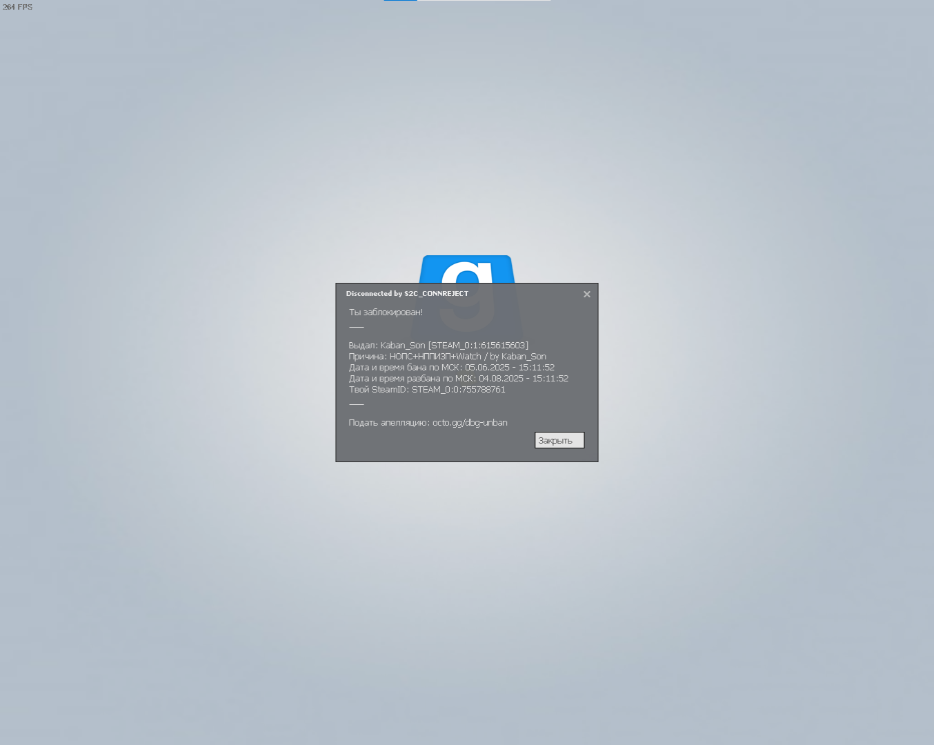 - Вид наказания (если бан, то приложить скриншот окна блокировки; загружать сюда)