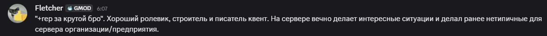 Я хочу стать гейм-мастером, чтобы помочь и разнообразить ролевую составляющую сервера, реализовать интересные истории, и у этого ранга есть множество инструментов, которые помогают создавать эти ситуации и отыгрыши. Работа игрового мастера - это организация ивентов и разработка сюжетов,