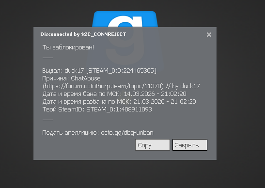 забанили проста так