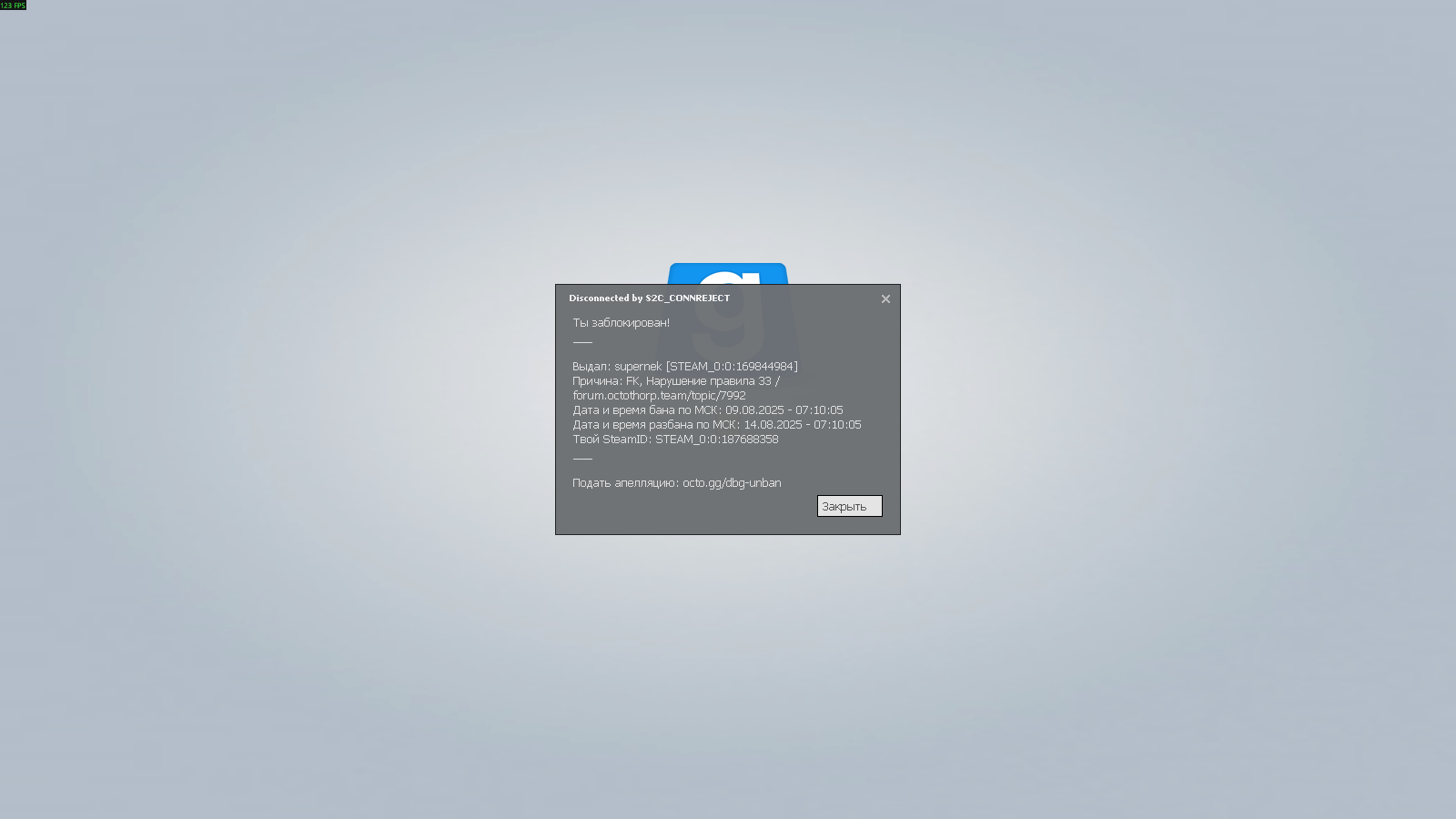 - Вид наказания (если бан, то приложить скриншот окна блокировки; загружать сюда) Блокировка в две недели до 3 ноября.
