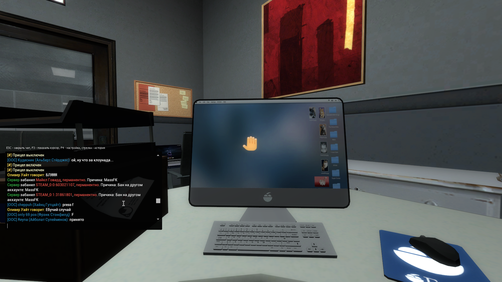 - Описание ситуации: Я бежал с кентом за белой машиной у мэрии, потом у меня вылетело, потом я написал тикет с просьбой посмотреть логи, сказали что следов нет.
