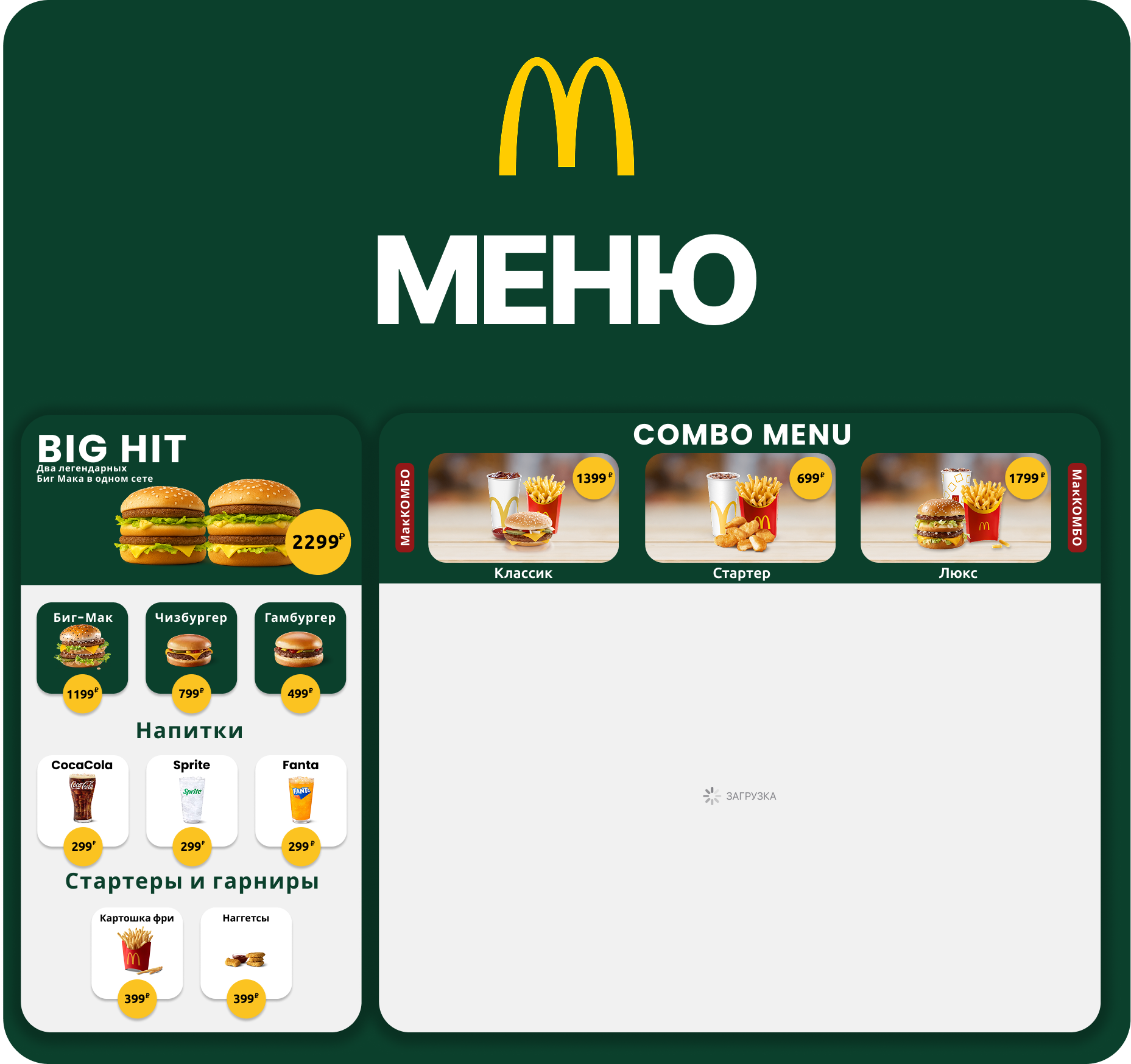 McDonald’s - это глобальная сеть ресторанов, ставшая синонимом американского фастфуда во всем мире. Её визитная карточка это неизменный стандарт качества и узнаваемый вкус таких блюд, как гамбургеры и картошка фри, которые покорили миллионы людей по всему миру.
