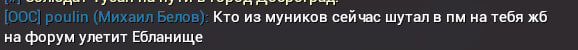 - Чувак наиграл 100 часов и решил что он великолепно отыгрывает муниципала. Итого: 8х механ (6 наручников и 2 обыска), нарушение игры за полицию, бэдкопство, игра в свою пользу, а также полный игнор моих замечаний касательно его игры. По списку: незнание базовых формулировок полиции, незнание о РП отыгрыше в /me, нелестные высказывания в адрес сервера, незнание правил игры за полицию, незнание и отказ признавать билль о правах, а также злостное нарушение механа и игры за полицию (как например ситуация где он связал 6 человек и просто отпустил их восвояси.