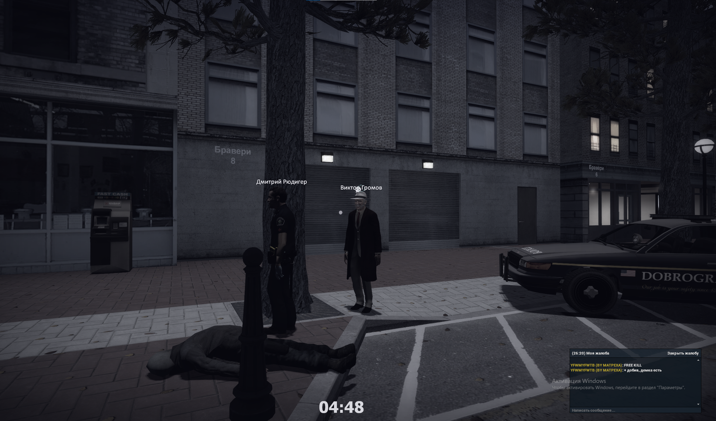 - Описание ситуации В ходе словесной перепалки был убит за оскорбление и провокацию (затем и добит), после он же вернулся спустя минут 15-20 на эту же ситуацию с моим трупом, и начал копам качать, что меня убил мол кто-то другой. FK + возращение на место преступления + НППЗИК (убийство в зеленой зоне). С провокаторами по провокаторски, но тут бы хватило и угрозы стволом, либо избиением.