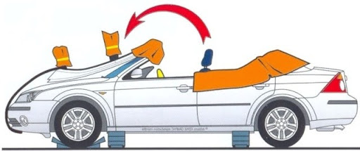 Для гарантии того, что автомобиль не перевернется, необходимо установить опоры под передней и задней стойками лежащего автомобиля. Отключить питание автомобиля, удалить стекло. После консультации с парамедиком удалите или обрежьте ремни безопасности.