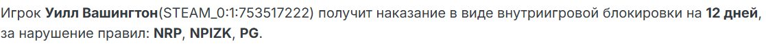- Ник участника команды, который выдал наказание: @Tweedlex