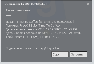8. Причины для снятия наказания (если выдано навсегда, то твои планы на игру и то, какой вклад ты сможешь внести в сообщество после снятия наказания): Смотрите я хочу чтобы меня разбанили иза того что сервер мне дал бан когда меня телепортировал администратор и мне прилетает бан также хочу продолжать играть на сервере мне очень нравится играть на этом сервере прошу вас снимите наказание и также снимите наказание с https://forum.octothorp.team/user/poulin?_=1766074780933 я же не намеренно это сделал