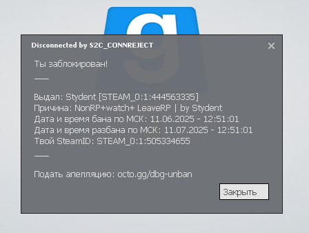 - SteamID или ник нарушителя (если имеются)- STEAM_0:1:504175297